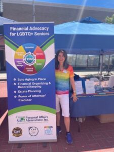Ilene Amiel, owner of Personal Affairs Administrator, Inc. is a Certified Senior Advisor who specializes in helping seniors with all aspects of their financial lives. She completed the SAGECare cultural competency training, is a Loft LGBTQ+ Community Center Certified Business Partner and a proud mother of gay son.
