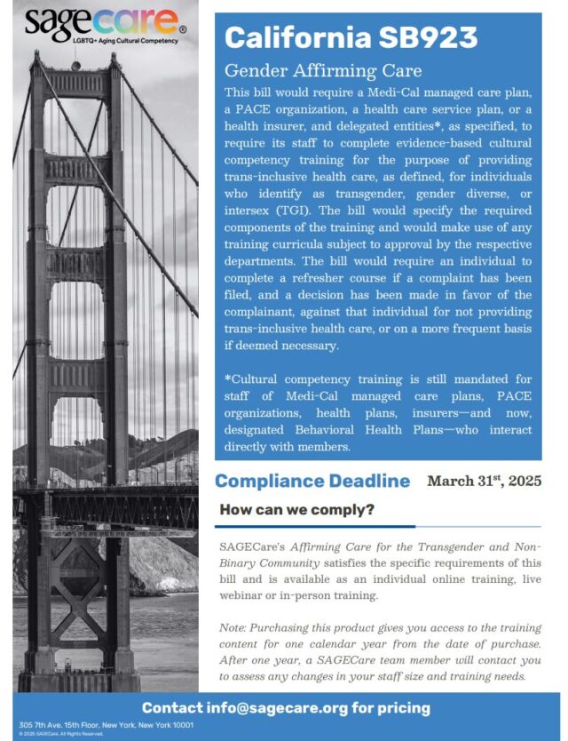 This bill would require health plans, insurers, and related organizations to ensure their staff complete approved cultural competency training to provide inclusive care for transgender, gender diverse, and intersex (TGI) individuals.